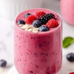 A thick, creamy, and flavorful Mixed Berry Smoothie packed with fruity goodness, Greek yogurt, oats, and your choice of sweetener. Perfect as a quick breakfast or snack to keep you full and energized.