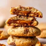 These Cookie Butter Cookies are thick, soft, and gooey filled bakery-style treats packed with biscoff cookie crumbs and a generous amount of biscoff cookie butter inside. They have a perfect balance of cinnamon-spiced dough and a rich, ooey gooey biscoff filling, making them the ultimate delight for any cookie butter lover.