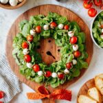 This Caprese Salad Wreath is a festive and visually stunning holiday appetizer featuring fresh baby arugula, grape tomatoes, mozzarella pearls, and basil, all drizzled with tangy balsamic vinaigrette or glaze. Perfect for parties, it’s a quick and simple recipe that turns classic Caprese ingredients into an eye-catching wreath presentation.