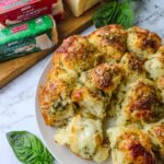 This Cheesy Pesto Pull Apart Bread is a deliciously soft and flavorful bread layered with sharp cheddar, Monterey Jack cheeses, and aromatic basil pesto. Perfect for sharing during game nights or as an appetizer, this pull-apart bread combines the richness of cheeses with the fresh flavors of pesto in a soft, warm bread ideal for dipping and tearing apart.