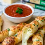 These Cheesy Stuffed Breadsticks are golden brown, buttery, and packed with melted Monterey Jack cheese, making them the ultimate comfort food appetizer or snack. Perfect for serving warm with marinara sauce for dipping, they combine soft pizza dough with a flavorful garlic herb butter glaze.