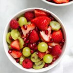 - Combine Fruit: In a large bowl, add the prepared grapes, strawberries, kiwi, raspberries, and pomegranate seeds.
