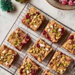 Delight in these festive Cranberry White Chocolate Blondies, combining tart fresh cranberries, sweet white chocolate, and salty pistachios into a chewy and golden-baked treat perfect for the holidays or any special occasion.