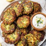 This Best Zucchini Fritters Recipe delivers crispy, flavorful fritters with a golden crust and tender inside. Packed with fresh herbs, tangy lemon zest, and optional feta and Parmesan cheeses, these zucchini fritters are perfect as a snack, appetizer, or side dish. Crispy panko and a hint of cayenne add extra texture and flavor. Serve warm with garlic yogurt aioli, sour cream, or tzatziki for a delicious treat.