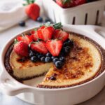Earl Grey Creme Brulee Pie is a silky smooth dessert infused with fragrant Earl Grey tea and vanilla, set in a chocolate gluten-free pie crust. Topped with a crunchy caramelized sugar layer and fresh berries, this elegant pie is perfect for brunch, tea-time, or dinner dessert.