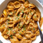 This French Onion Pasta recipe is a delicious one-pot meal featuring deeply caramelized onions, a creamy sauce without heavy cream, and rich umami flavors from secret ingredients like Worcestershire and soy sauce. Perfect for a comforting and budget-friendly dinner, it combines tender short cut pasta with Gruyere and Parmesan cheese for a luscious finish.