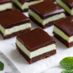 - Assemble Brownies: Allow brownies to cool completely in the pan. Spread the mint buttercream evenly over the top. Then drizzle or pour the chocolate ganache ganache evenly over the buttercream layer.