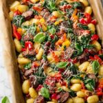 A delicious and easy sheet pan dinner featuring tender cauliflower gnocchi, savory smoked kielbasa, and colorful roasted vegetables seasoned with fresh herbs and Parmesan cheese. This one-pan meal is perfect for a quick weeknight dinner with minimal cleanup.