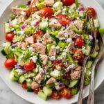 This 30-minute Greek-inspired dinner features juicy grilled chicken marinated in a lemony, garlicky vinaigrette, tossed with fresh cucumber, tomatoes, bell pepper, red onion, and salty feta cheese. It's a vibrant, healthy, and easy meal perfect for summer evenings, served with optional grilled pita bread.