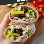 A flavorful and healthy Greek Turkey Wrap with Hummus featuring fresh veggies, feta cheese, and a tangy Greek vinaigrette wrapped in a soft tortilla. Perfect for a quick, satisfying lunch.