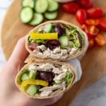 A flavorful and healthy Greek Turkey Wrap with Hummus featuring fresh veggies, feta cheese, and a tangy Greek vinaigrette wrapped in a soft tortilla. Perfect for a quick, satisfying lunch.