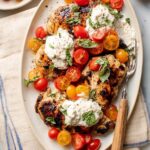 This Grilled Chicken Caprese with Burrata is a delightful twist on the classic Caprese salad, featuring juicy grilled chicken breasts topped with creamy burrata cheese and a fresh tomato-basil salad, all drizzled with a sweet and tangy balsamic glaze. It's a quick and satisfying meal perfect for any season.