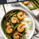 Transfer the cooked shrimp and green beans to a large bowl, pour that luscious thickened sauce over the top, and toss until everything is coated evenly. I always serve mine with steamed rice to soak up all the honey garlic goodness!