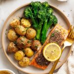 - Serve: Serve the salmon, potatoes, and broccoli with lemon wedges for squeezing over the salmon for added brightness.