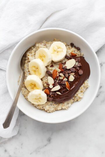 My favorites include fresh berries, sliced bananas, toasted nuts, a drizzle of maple syrup or honey, and a sprinkle of cinnamon or nutmeg. Don’t forget a spoonful of nut butter for an extra protein boost!