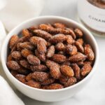 Maple Cinnamon Almonds are a delicious and healthier snack featuring raw whole almonds coated in a sweet and fragrant mixture of pure maple syrup and ground cinnamon. Toasted to perfection on the stovetop, these crunchy candied almonds are naturally vegan and gluten-free, making them a guilt-free treat ideal for snacking or gifting.