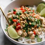- Serve. Serve the Thai Peanut Chicken over rice, cauliflower rice, Pad Thai noodles, or your choice of noodles. Garnish as desired to complete the dish.