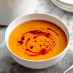 A simple and nourishing Easy Red Lentil Soup recipe that is packed with flavor. This comforting soup features sautéed aromatics, spices, red lentils, and vegetables simmered to perfection and blended until smooth. It is finished with a warm, spiced Aleppo pepper butter drizzle and served with lemon wedges for a bright contrast.