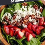 A vibrant and refreshing strawberry spinach salad featuring fresh baby spinach, juicy sliced strawberries, crunchy candied pecans, and crumbly feta cheese, dressed with a zesty lemon poppy seed vinaigrette. Perfect as a light lunch or elegant side dish.