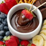This Dairy Free Chocolate Fondue is a rich, creamy, and decadent vegan and paleo-friendly dessert perfect for dipping fresh fruits, gluten-free pretzels, or your favorite treats. Made with dairy-free chocolate and unsweetened almond milk, it’s an easy-to-make, crowd-pleasing fondue that melts smoothly without any dairy or gluten.