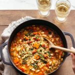 Hearty vegetable barley soup packed with nutritious vegetables, tender barley, and creamy cannellini beans. This warming and satisfying soup is perfect for a cozy dinner and can be easily stored or frozen for later enjoyment.